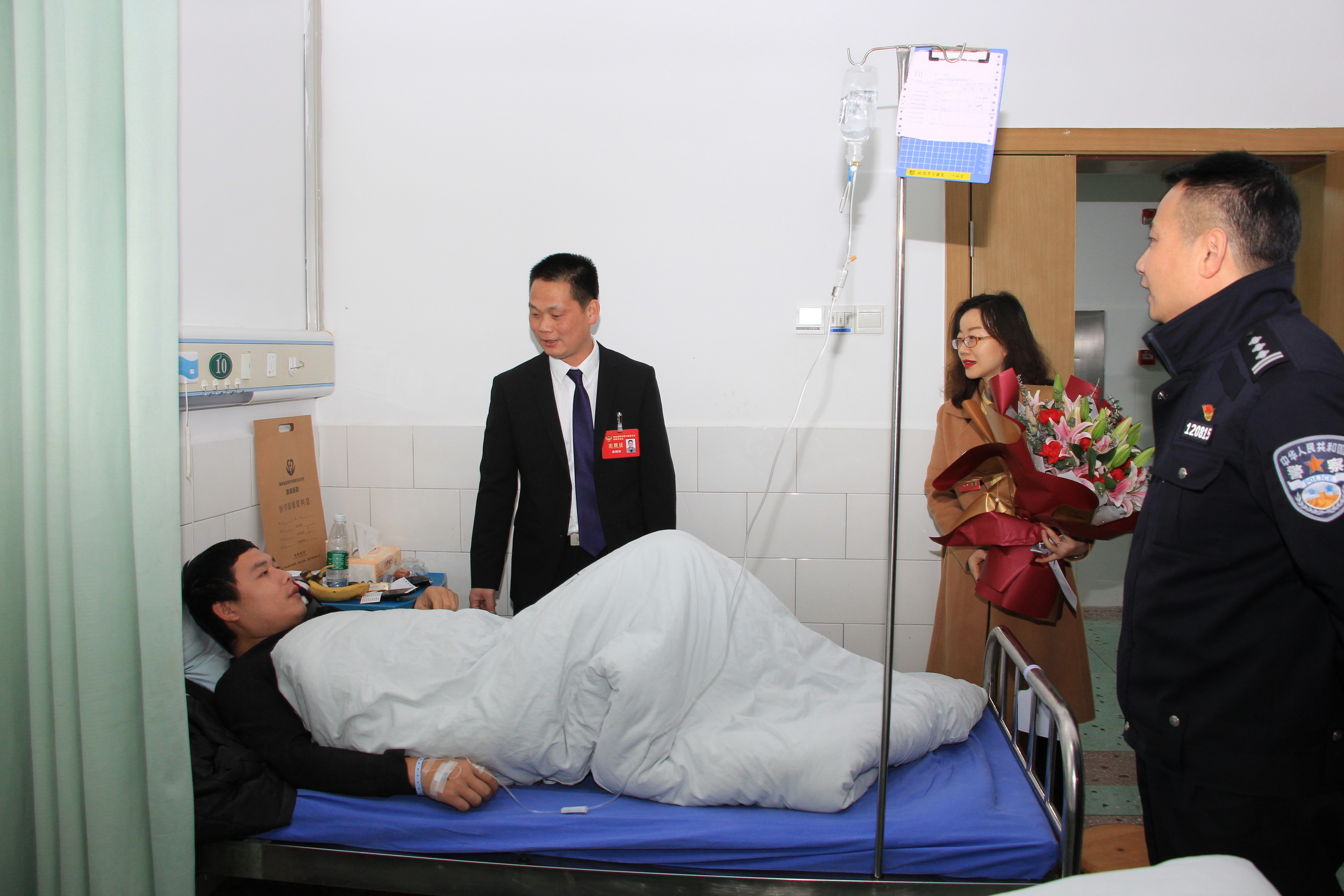 市政协副秘书长龙明涛代表市政协六届四次会议组委会,看望在会议执勤任务中负伤的干警田明同志,并通过他向服务保障本次大会的广大公安干警表示感谢!