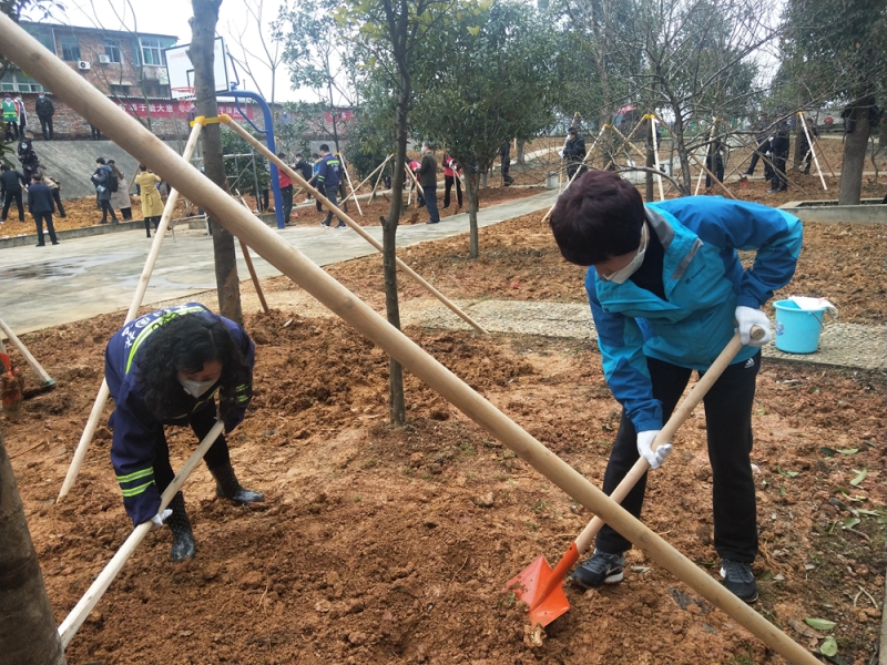 一到赫山区金银山街道水箱花苑小区,刘丽华就同大家一起挽起袖子开始植树。大家分工合作,扶树正苗、挥锹铲土、回填入坑、培实新土……认真做好每一道工序,配合默契,干劲十足,合力栽下了一棵棵树苗,现场一派热闹忙碌的劳动景象。经过大家共同努力,一株株新栽下的树木迎风挺立、生机盎然,为银城增添了一道靓丽的风景线。