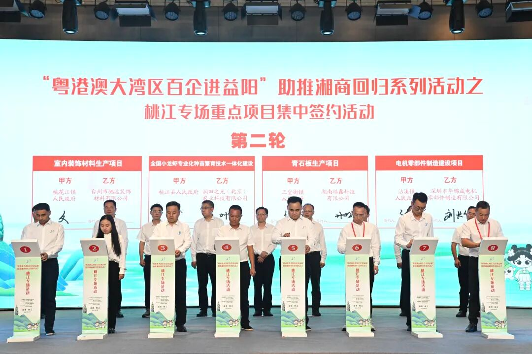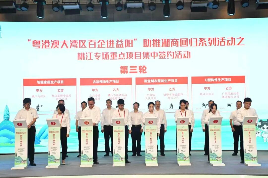 9月30日,市政协“粤港澳大湾区百企进益阳”助推湘商回归系列活动之桃江专场重点项目集中签约仪式举行。现场共签署正式投资合同16个,达成合作意向7个,其中亿元以上项目9个。