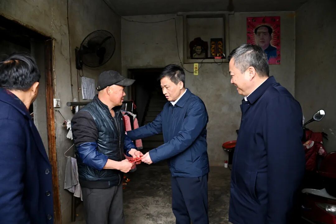 陶汉文一行首先走进村民家中,详细了解他们的生活状况与具体困难,鼓励他们要保持乐观,相信在政策帮扶和自身努力下,生活一定会逐步改善,同时叮嘱随行干部要格外关心此厚的文化气息与喜庆氛围。 随后,陶汉文在杨梅山村村部慰问了乡村振兴驻村工作队及村支“两委”成员,并听取工作汇报。他对驻村工作队进驻以来取得的扎实成效予以肯定,并就下一步工作提出明确要求:要筑牢战斗堡垒,强化党建引领,持续建强村支“两委”班子,完善各项制度,切实将基层党组织建设成为富有凝聚力、战斗力的坚强核心。要精准谋划项目,积极争取支持, 紧密围绕村庄发展的紧迫需求和资源实际,科学谋划、主动对接,全力争取上级在政策、项目和资金上的支持。要立足本地资源,做强特色产业,充分挖掘杨梅山村自身的资源禀赋,因地制宜发展可持续的特色产业,以坚实的产业基础带动乡村全面振兴。