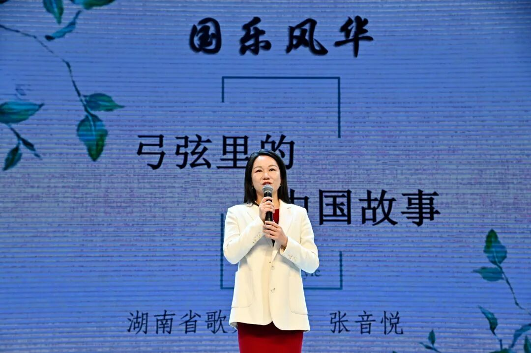 “从远古的骨笛到明清的胡琴,每一件乐器都承载着民族的记忆;从《高山流水》到《红旗颂》,每一段旋律都凝聚着时代的精神。”讲座现场,张音悦老师以“九千载芳华”“革命的战歌”“建设的颂歌”“文化的高歌”四个篇章为脉络,用生动的讲述与现场演奏片段,带领听众穿越数千年时光。她细致拆解二胡、琵琶、古筝等民族乐器的音色特点与文化内涵,结合经典曲目,讲述国乐在不同历史时期如何传递民族情感、凝聚奋进力量,让在场观众直观感受到“弦音里的中国”。