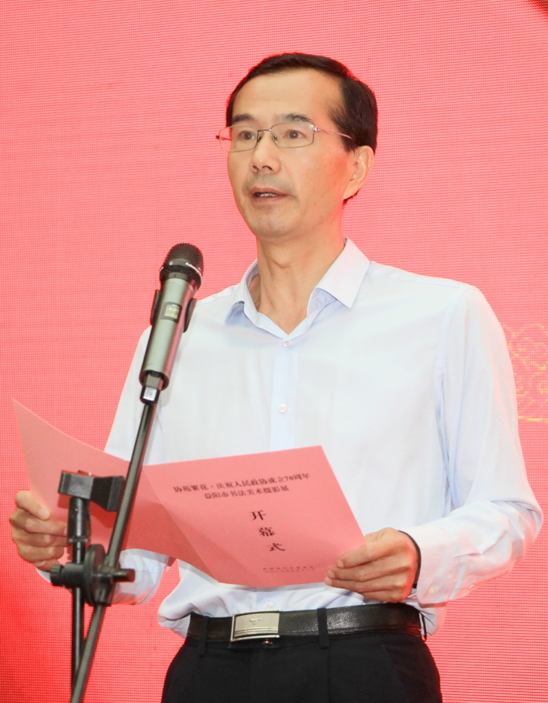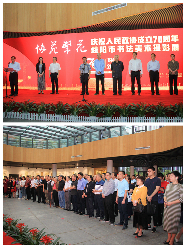 9月18日,市政协“协苑繁花——庆祝人民政协70周年书法美术摄影作品展”在市美术馆隆重开幕。市政协主席黄加忠宣布展览开幕!市政协副主席徐德华代表益阳市政协向前来参观展览的领导、嘉宾朋友们表示诚挚欢迎。