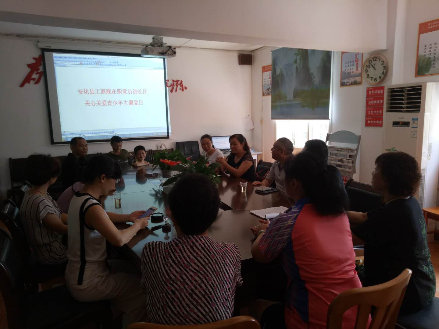 8月20日,工商联组织全体党员、群众代表、青少年代表共同观看了红色影片《闪闪的红星》,观影结束后一起深入爱国主义教育基地----安化烈士纪念碑,接受红色革命教育。8月21日,结合在职党员进社区活动,县工商联全体党员深入黄合社区,进行了在职党员进社区服务岗位的认领,并组织社区贫困学子开展了思想道德教育座谈,进行了帮扶慰问。