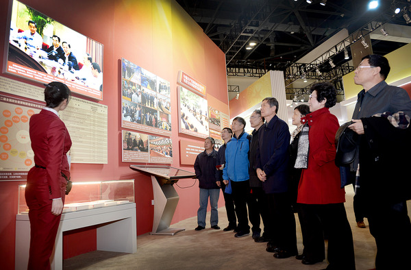 最吸引委员们目光的是第三展区,这一展区的主题是“坚持中国特色社会主义政治发展道路,推进国家治理体系和治理能力现代化”。作为国家治理体系的重要组成部分,人民政协最近五年不平凡的历程在这里得到了集中体现,其中“中国共产党领导的多党合作和政治协商制度独具魅力”和“协商民主体系基本形成”两个板块,集中展示了全国政协五年来的工作亮点和创新。作为此次大型成就展的参展单位之一,全国政协办公厅为办好此次展览更是不遗余力,深受委员们的好评。
