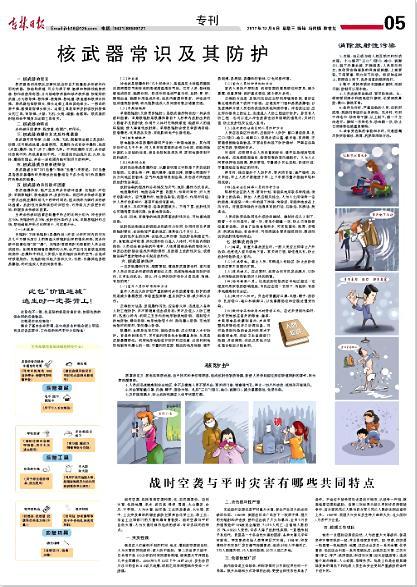 今日出版的《吉林日报》第5版刊登标了标题为《核武器常识及其防护》、《消除放射性污染》、《战时空袭与平时灾害有哪些共同特点》以及《此包“价值连城”逃生时一定要背上!》相关核武防护常识图文,引发了外界的各种猜测。