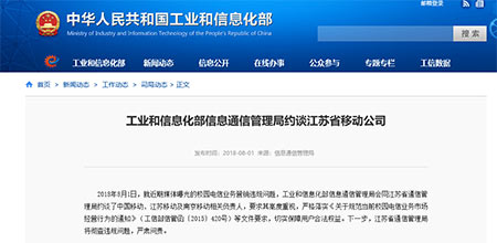 人民网北京8月2日电 (易潇)根据工信部网站消息,昨日,就近期媒体曝光的校园电信业务营销违规问题,工业和信息化部信息通信管理局会同江苏省通信管理局约谈了中国移动、江苏移动及南京移动相关负责人,要求其高度重视,严格落实《关于规范当前校园电信业务市场经营行为的通知》(工信部信管函〔2015〕420号)等文件要求,切实保障用户合法权益。下一步,江苏省通信管理局将彻查违规问题,严肃问责。