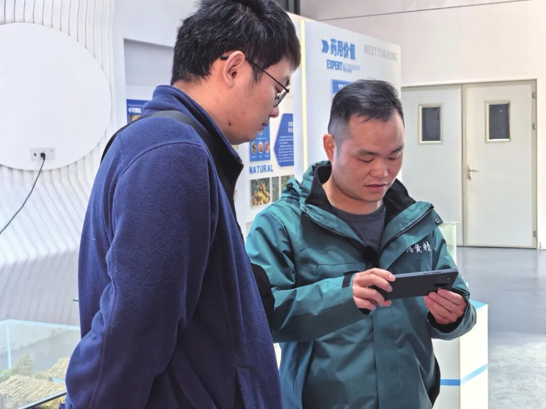 蒋双辉(右)关注公司黄精产品