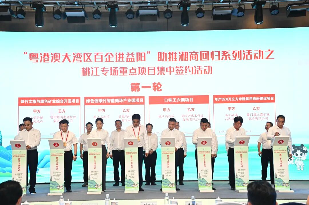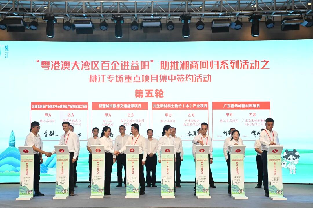 9月30日,市政协“粤港澳大湾区百企进益阳”助推湘商回归系列活动之桃江专场重点项目集中签约仪式举行。现场共签署正式投资合同16个,达成合作意向7个,其中亿元以上项目9个。