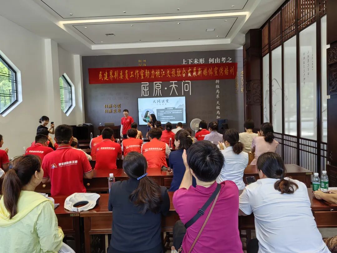 5月21日,民建益阳市委会副主委、市住房公积金管理中心主任、民建界别委员工作室召集人苏霓带队赴桃花江竹海开展助力桃江文旅融合发展新媒体宣传培训,桃江县14家旅游企业、60余名旅游行业从业者参与学习。民建益阳市委会副主委、市人大常委会代表工委副主任陈发良等参加。